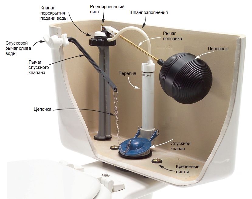 Doldurma - tankın esnek bir borudan akan su ile doldurulmasını sağlayan bir düğüm. Valf tasarımı, suyun doğru zamanda erişimini engelleyen özel bir valfe sahiptir. İşi, köpük veya diğer hafif malzemelerden yapılmış bir şamandıra ile sağlanır.