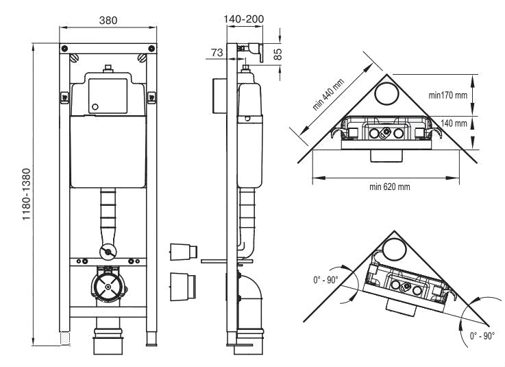 - Tuvaleti odanın köşesinin açıortayına monte edebilirsiniz, daha sonra tank 45 veya 90 derecelik bir açıyla yerleştirilir.