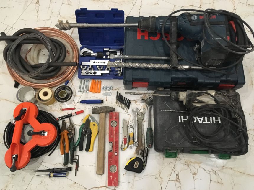 Klimanın her iki bileşeni de duvara monte edilmiştir. İç ünite - iç mekan, dış mekan - binanın cephesinde. Freon için bir elektrik kablosundan ve bakır borulardan özel bir yolla bağlanırlar. Palet, duvardaki deliklerden geçirilir.
