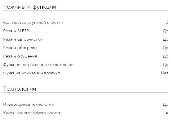 Böyle bir kompresör nedeniyle, cihaz kısa sürede odadaki istenen sıcaklığı yakalar ve daha sonra minimum enerji tüketimi modunda çalışarak düzgün bir şekilde tutar ve hassas bir şekilde kontrol eder. En yüksek enerji verimliliği ölçeği olan A'ya tahsis edilmiştir.