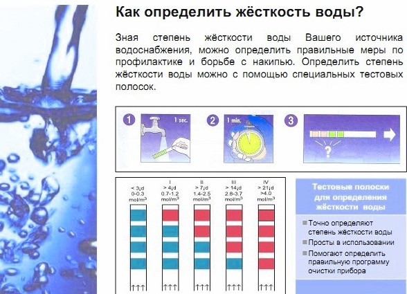 Bu ayarları doğru şekilde yapmak için, bulaşık makinesine giren suyun sertliğini doğru bir şekilde belirlemeniz gerekir. Bu amaçlar için tasarlanmış test şeritleriniz yoksa, internete bakmayı deneyebilirsiniz. Örneğin, Mosvodokanal web sitesi, şehir su kaynağındaki suyun özellikleri hakkında bilgi sahibidir.