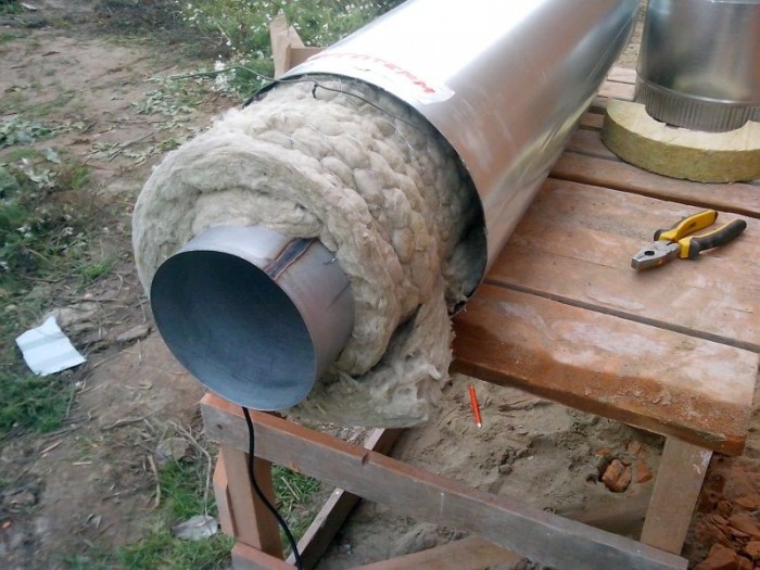 Yalıtımın kalınlığı, tüm ihtiyaçlara göre bir kerede seçilmelidir. Kondensin garanti edilmesinden kurtulmak için havalandırmanın dış kısmı, 100 mm'den itibaren 50 mm veya daha iyi bir kalınlığa sahip bir ısıtıcı ile korunur. Boru kafası donanımı saptırıcı.