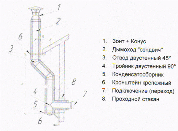 Daha rahat bir seçenek, odayı sokakta bırakarak duvardaki veya borudaki egzoz sistemi olabilir. Bir çıkış deliği baca dışından uzakta veya biraz daha alçak yapılır.