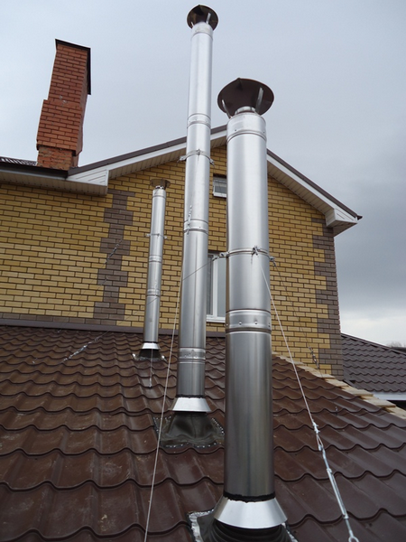 Havalandırma çıkışlarının üretimi için bacaların kullanılmasının bir başka avantajı, müteakip güvenilir sabitleme için uzantıları kelepçelerle bağlama yeteneğidir. Ve bir havalandırma kanalı olarak paslanmaz çelik baca borularının hizmet ömrü pratik olarak sınırsızdır.