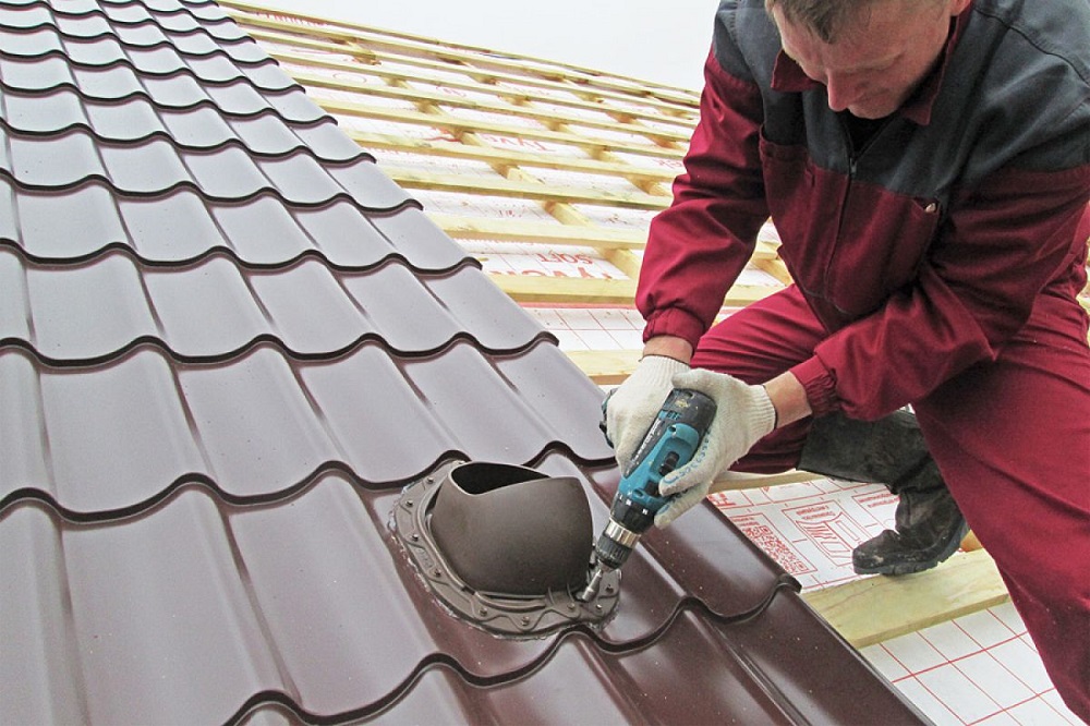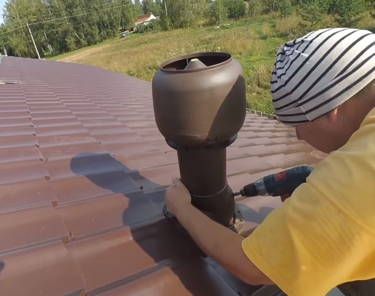 Kurulum bir metal kiremit çatısında yapılırsa, genellikle dahil edilen şablona göre ilk şey, çatı malzemesinde işaretlemek ve bir delik açmak gerekir. Deliğin yapılacağı yerde, çatı levhalarının altında çıtalar ve kirişler olmamalıdır, aksi takdirde boru yerleştirilemez.