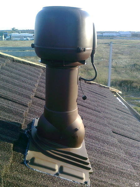 Çatıya böyle bir çıkış havalandırma boruları rüzgar ve sıcaklıktan bağımsız olarak güvenli çekiş sağlar. Doğal havalandırmanın işe yaramayacağı rüzgar durgun su alanına bile monte edilebilir. Bir elektrik motorlu fanın evin dışında olması nedeniyle, iç mekanda aşırı gürültü yaratmaz.