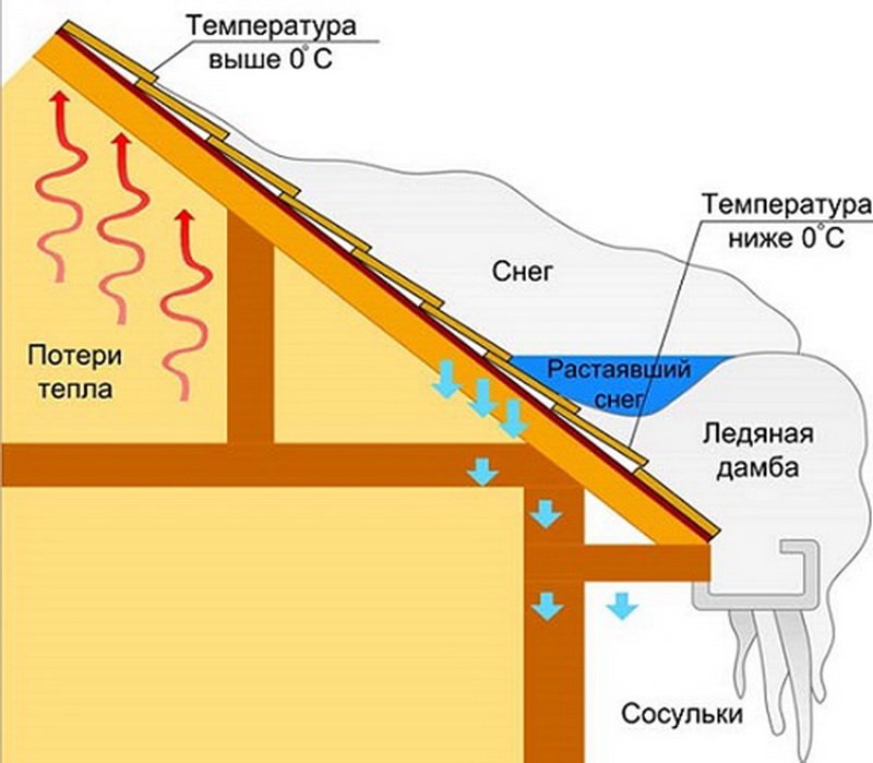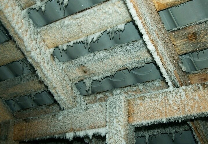 Her şeyden önce, çatı havalandırması ile ilgili sorunlar, çatı elemanlarında nem ve nem yoğunlaşmasının artmasına neden olur. Kışın, nem çatı yapılarında yoğunlaşır ve çözüldüğünde eriyen ve suya dönüşen dona dönüşür.