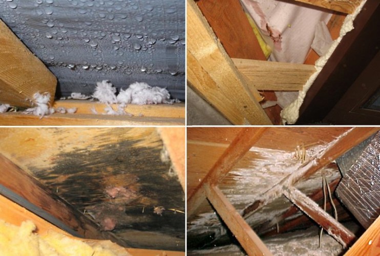 Tabii ki, durumu böyle bir duruma getirmek için, tavanların ve çatıların montajı için kuralları ciddi bir şekilde ihlal etmek veya uzun süre havalandırma sorunlarına dikkat etmemek gerekir. Bununla birlikte, sıkıntılarla karşılaşma olasılığı hala harika.