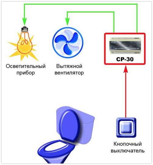 Banyoda veya tuvalette bir fan bağlamak için çeşitli bağlantı şemaları kullanılabilir. Egzoz cihazına güç sağlama seçeneği ile kendi aralarında farklılık gösterirler.
