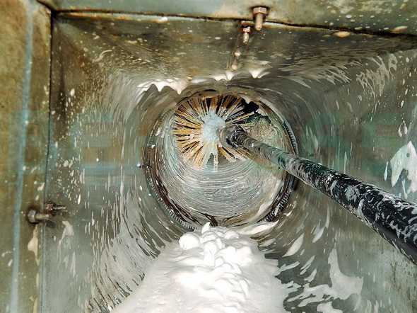 Havalandırma kanalını kendi kendini temizlerken elektrikli süpürge ile üflemenin yanı sıra, temizlik ve dezenfeksiyon için özel kimyasalların kullanılması yasaktır. Bilgi ve beceri olmadan, sıradan bir kullanıcı püskürtme için uygun konsantrasyonu doğru bir şekilde hesaplayamaz. Çok agresif bileşim kanalların duvarlarına zarar verebilir veya sakinlerin zehirlenmesine neden olabilir. Ev temizliği için izin verilen tek madde kuru buzdur.