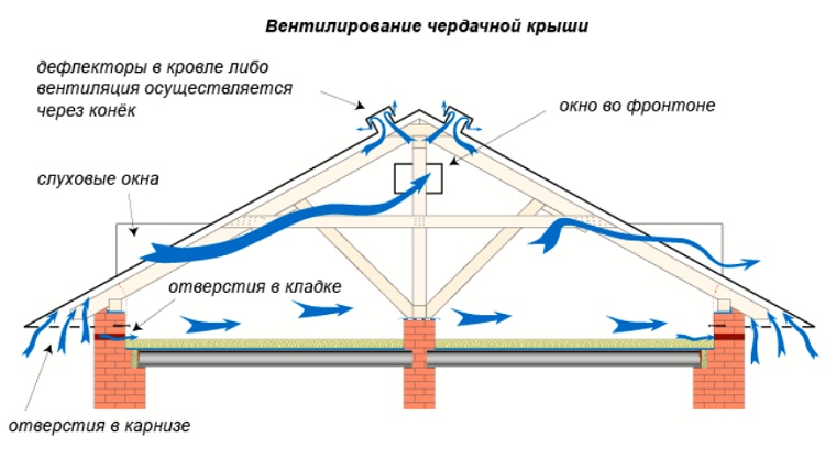 Sorunu çözmek zor değildir: her alınlığa havalandırma ızgaraları, dormerler, hava girişleri veya cephe havalandırma çıkışları monte etmek yeterlidir, böylece her soğuk üçgen havaya nüfuz edebilir.