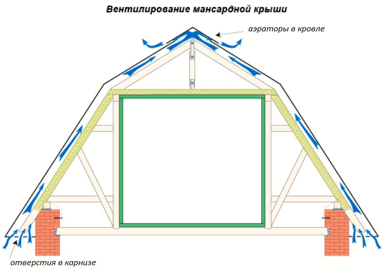 Ayrıca, havalandırma bir antidormer sağlayacaktır. - çatıda "gömme" bir pencere. Bu tasarım daha ucuzdur, ancak iç mekan, dış mekan değil, kurulum için alan kullanılır. Özellikle geniş bir eğime sahip çatılarda popüler - örneğin, kırık çizgiler.