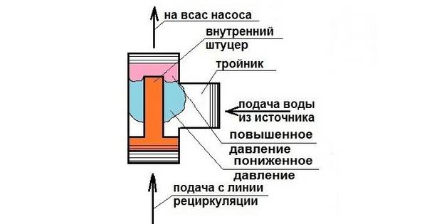 Bu nedenle, cihazın her biri ilgili boruya bağlanması gereken üç çıkışa sahiptir. İlk olarak, genellikle suyun kaynaktan çekileceği bir boru monte edilir. Ejektörün yan çıkışına katılır.