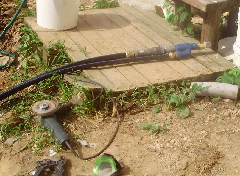 Üçüncü boru sıradan bir su şebekesidir. Bir ucunda, ejektörün üst memesine monte edilir ve diğeri yüzey pompasına bağlanır. Kaynağın içinden su çekildiği borunun çapının, su ejektöre beslendiği borunun boyutlarını aşması gerektiği unutulmamalıdır.