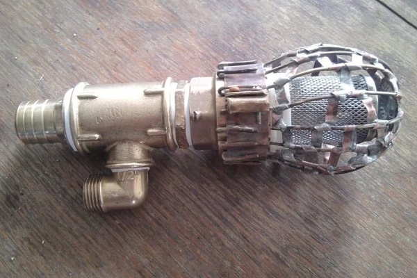 - Bu köşeye bir pens kelepçesi, bir kuyudan su, bir kuyu vb. İle bir boru bağlanır.