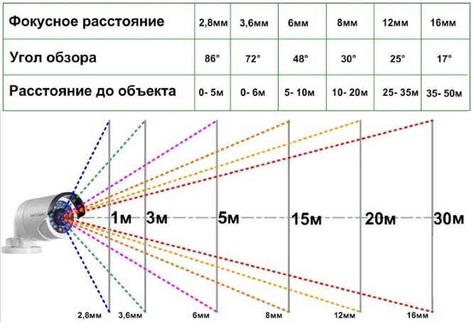 Angle de vision de l'objectif et distance focale. Un objectif grand angle à focale courte est une bonne solution pour un chalet, un bureau.