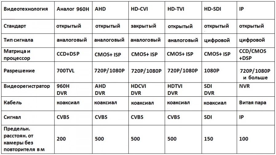 Ces caméras sont appelées capables de transmettre une image uniquement sur une courte distance, simplement analogique ou CVBS. Ces normes obsolètes incluent les appareils VGA, D1, 960H.