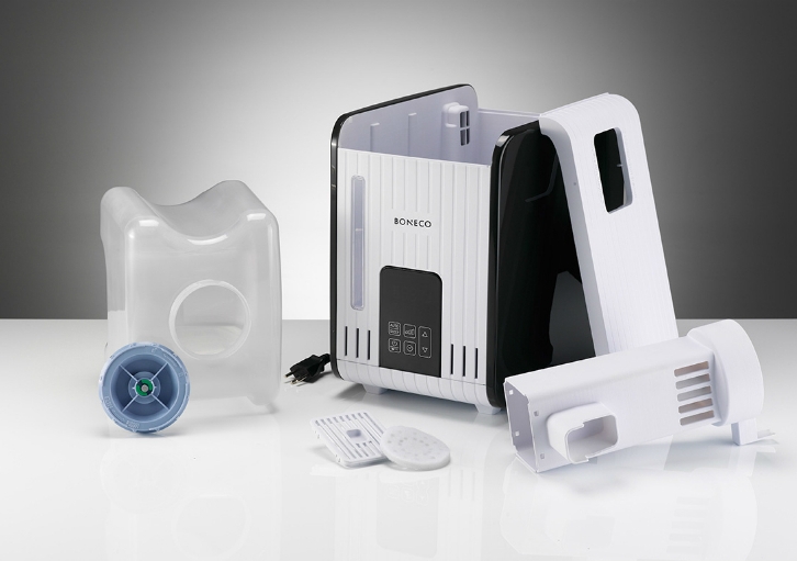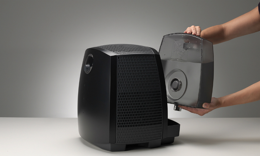 L'appareil est sans prétention, faites le plein avec de l'eau du robinet. Il est temps de retirer le couvercle du boîtier, de rincer les disques et le réservoir et d'essuyer le ventilateur. Caractéristiques supplémentaires: aromatisation et mode nuit silencieux.