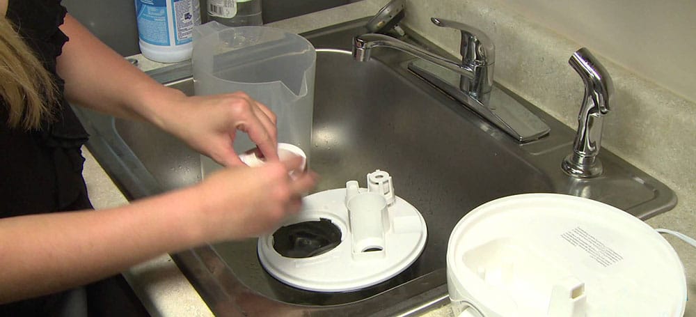 Tout humidificateur doit être nettoyé périodiquement. Pour nettoyer l'appareil du tartre, vous devez obtenir un réservoir d'eau et déconnecter de l'appareil toutes les pièces possibles. S'il reste de l'eau dans le réservoir, versez-la et rincez-la soigneusement sous le robinet.
