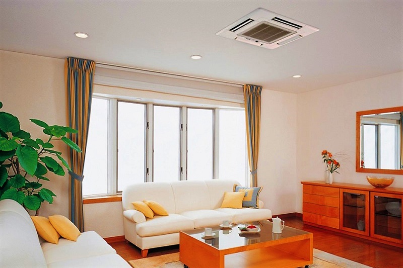 Plancher et plafond les unités sont plus puissantes et conçues pour desservir des pièces spacieuses - centres commerciaux, bureaux, halls. Ils sont bons pour les espaces avec des murs en verre, car les blocs peuvent être montés au plafond ou au sol.