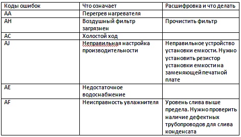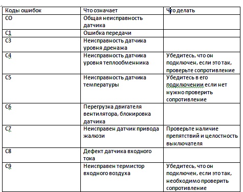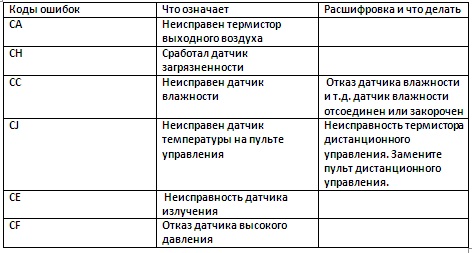 L'utilisateur doit non seulement décrypter les codes, mais aussi nettoyer périodiquement le climatiseur. Lors du dépannage, la réparation, selon la complexité, peut être effectuée sur site ou dans un environnement de service.