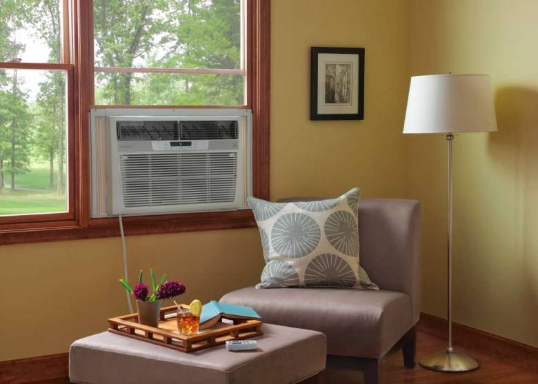 Aussi disponible climatiseur de fenêtre. C'est une barre chocolatée compacte. L'arrière d'un tel dispositif s'étend vers l'extérieur de la fenêtre.
