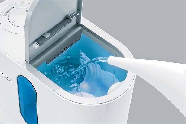 - Le corps de l'appareil est essuyé avec un chiffon en microfibre trempé dans l'eau, le réservoir est retiré, trempé et essuyé, et les éléments internes sont également trempés dans la solution pendant 15 minutes.