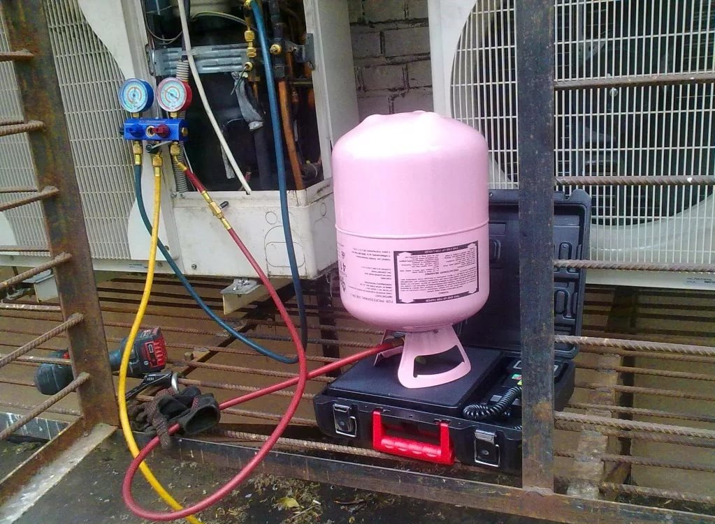 Le moyen le plus simple de contrôler la quantité de fréon est d'enregistrer la variation de poids du cylindre. Pour ce faire, avant de faire le plein, le réservoir de réfrigérant est mis sur la balance, le résultat est remis à zéro et les changements de performances sont observés avec le robinet de la bouteille ouvert.