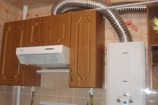 Mais pour les cas où il est nécessaire de faire une installation cachée de l'ondulation, il existe des solutions pratiques toutes faites. Par exemple, hottes intégrées, lunette pour ondulation, etc. Je me tais généralement sur les geysers, car dans ce cas, il y a définitivement une ondulation et même pas de joints en plastique, pas comme les conduits de ventilation en plastique. Les conduits d'air en plastique conviennent à une hotte de cuisine, mais je recommanderais de choisir des solutions en aluminium.
