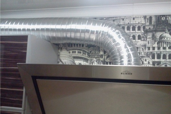 Pour extraire, en particulier les gaz chauds, vous devez toujours utiliser uniquement des tuyaux métalliques et des ondulations métalliques, afin que la poursuite de l'économie et de l'esthétique ne se transforme pas en feu. Il y a quelques nuances dans l'utilisation de la ventilation de la maison pour fournir un tuyau ondulé à partir de la hotte, vous devez d'abord vérifier si la ventilation de la maison fonctionne bien et comment elle change avec les changements de vent (car il arrive que lorsque vous changez la direction du vent, elle souffle du trou de ventilation brise). Ceci afin de ne pas brûler les utilisateurs.