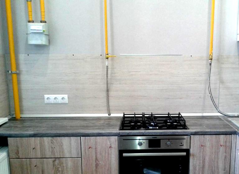 Conclusion: pour ne pas souffrir de design d'intérieur, la manière la plus simple réorganiser la plaque avec une capuche à un autre endroit. Si les finances le permettent et s'il y a un désir, vous pouvez transférer l'horizontale section de tuyaumais avec la coordination du service gaz.
