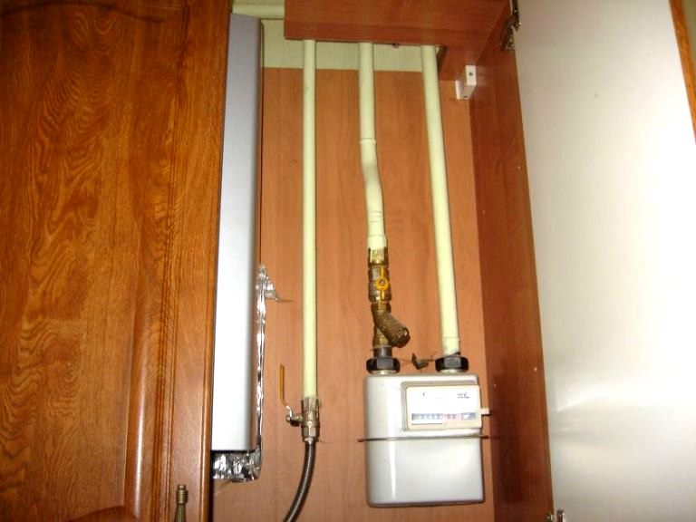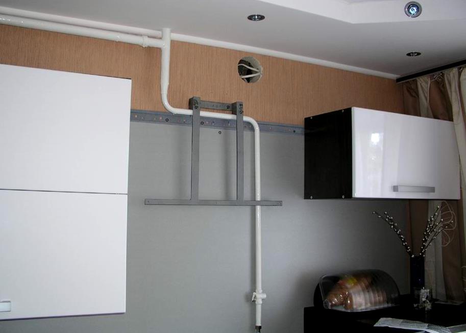 L'installation d'une structure intégrée ou articulée est simple, ne nécessite pas de compétences particulières et beaucoup de temps. Mais parfois, l'installation est compliquée par l'agencement peu commode des communications - par exemple, un tuyau de gaz en métal passant au centre du mur.