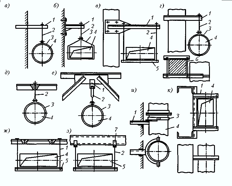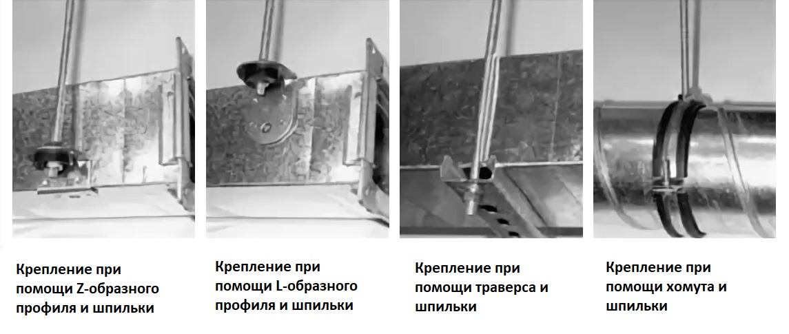 Les points de fixation doivent être à une distance de 1,5 à 3 m les uns des autres. Il est permis de s'affaisser entre eux pas plus de 5 cm par 1 m. Si le conduit est parallèle et au-dessus des structures de plafond, la distance entre les axes des pinces est de 100 cm.