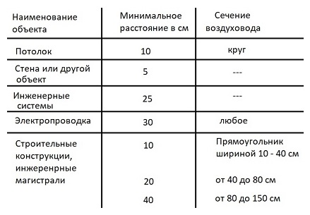 Le plus souvent, des conduits d'air sont fixés aux murs, au plafond, dans l'espace entre les fermes de plafond. Il reste inchangé que le centre des conduits et le plan des structures doivent rester parallèles l'un par rapport à l'autre.