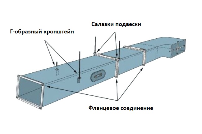 L'installation de fixations sur les brides du conduit est également INACCEPTABLE (c'est une photo avec une glissière sur les brides pour les suspensions)!