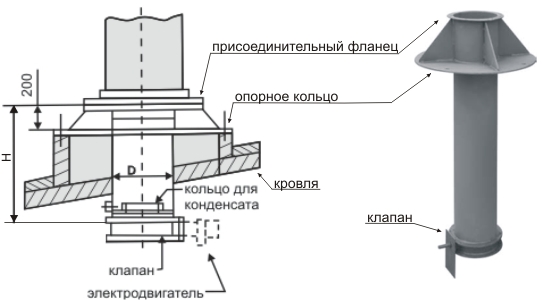 Des exigences supplémentaires sont établies pour la longueur du tuyau de ventilation, en l'absence de traction à l'intérieur, ventilateurs montés.