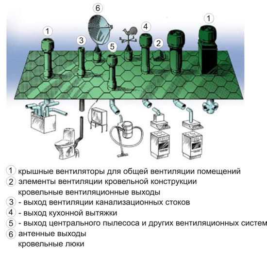 Conformité aux exigences mises en avant installation d'une unité de ventilation - la garantie qu'il n'y aura pas de moisissure ou d'humidité élevée dans la maison. L'une des tâches du toit est de protéger la pièce de la pénétration des précipitations, ainsi que de maintenir le régime de température optimal, qui est confortable pour les résidents de la maison.