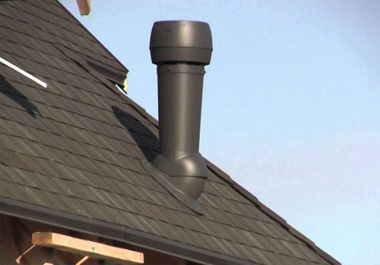 L'option la plus simple pour la pose de l'unité de ventilation peut être réalisée sur un toit souple. Pour ce faire, il est nécessaire de faire un trou dans le toit, qui, en diamètre, s'adapte au tuyau de ventilation posé dans la maison.