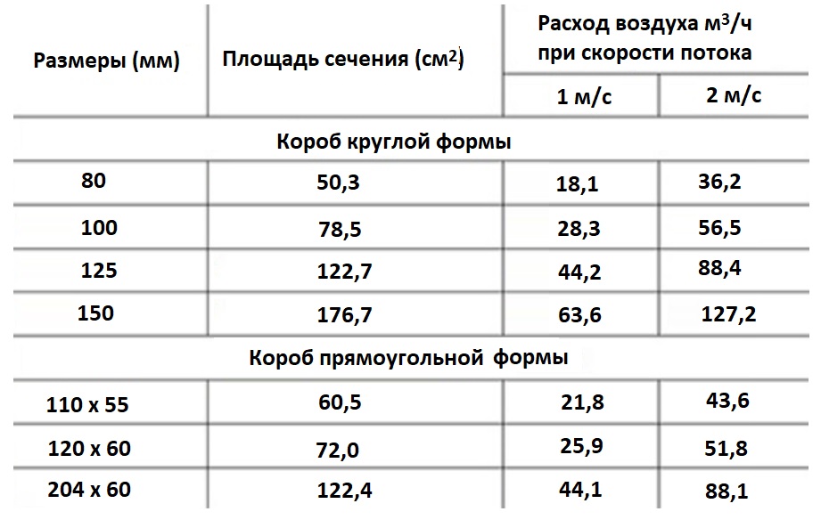 La zone de section transversale doit être choisie de sorte que la vitesse d'écoulement ne dépasse pas 2 m / s. Sinon, du bruit se produira dans le canal et une augmentation de la résistance entraînera une usure rapide de l'équipement.