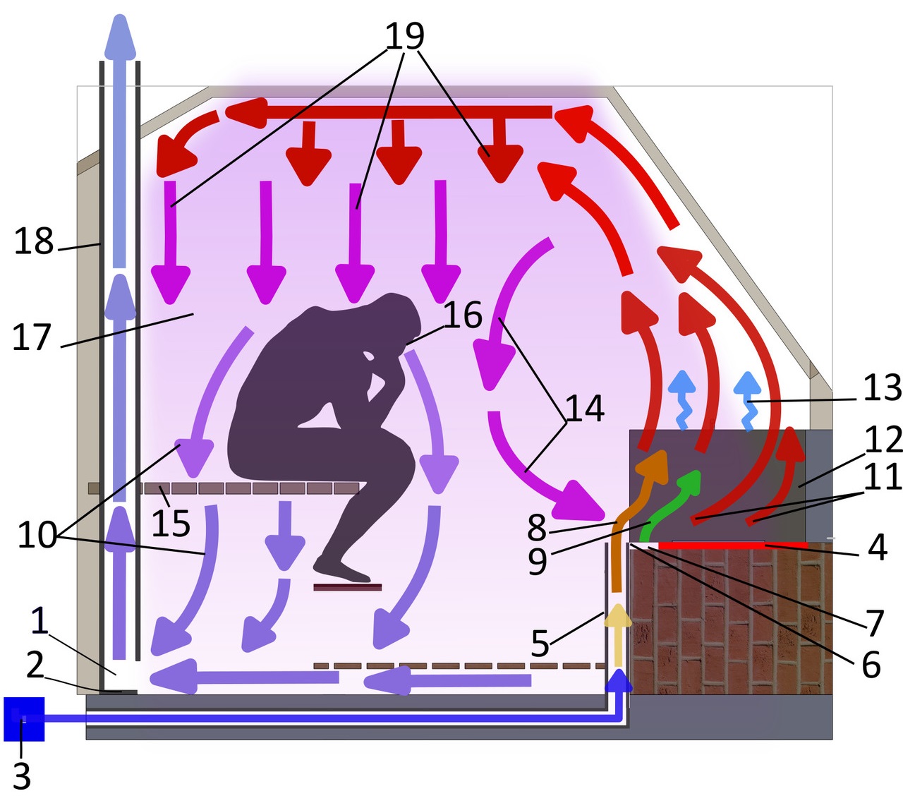 - L'air par le canal d'alimentation entre dans le hammam depuis la rue. Dans la version classique et la plus courante, c'est exactement ce qui se passe.