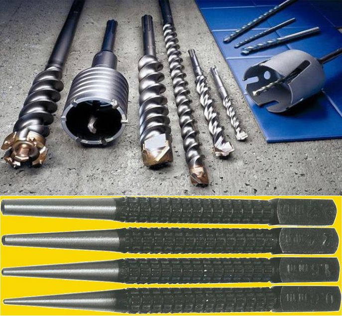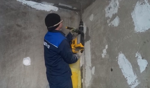 Parmi les outils dont vous aurez besoin: un poinçon, une perceuse, un burin, un poinçon, une couronne de 125 mm pour percer des trous dans le béton. Avec une grande épaisseur de plafond, les murs auront besoin d'une rallonge.