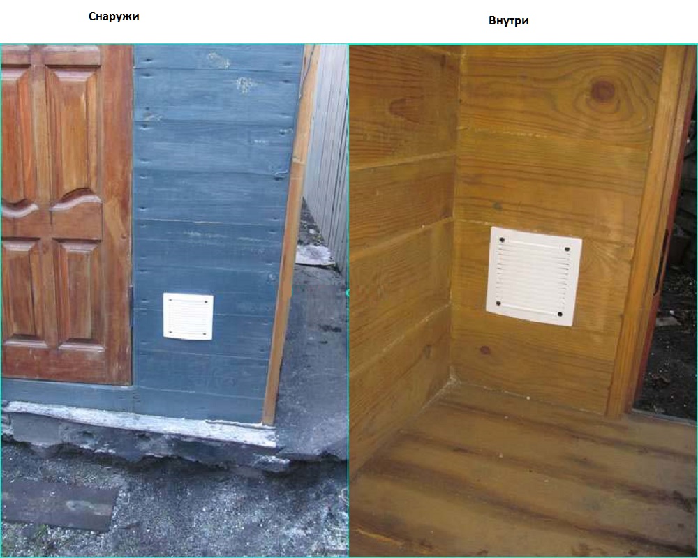 Les extrémités des tuyaux des deux côtés - de la cabine et de la rue, sont fermées avec des grilles de ventilation préparées. Cela est nécessaire pour que les ordures n'y pénètrent pas, les moucherons ne volent pas dedans et ne siphonnent pas beaucoup.