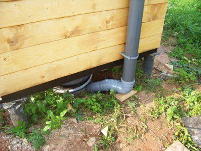 Ainsi, nous avons fourni un extrait dans les toilettes dans des conduits à l'intérieur de la cabine de toilettes. Après cela, vous pouvez commencer à équiper le puisard.