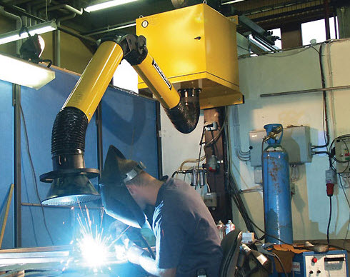 Pour les petits ateliers avec une disposition plus compacte des machines, il est conseillé d'installer une hotte centralisée.