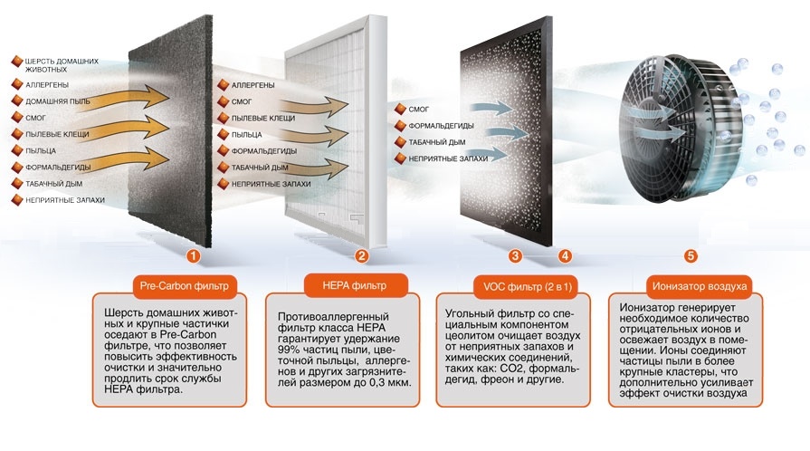 Les purificateurs à effet ionisant sont choisis pour les personnes ayant une protection immunitaire et des allergies inadéquates. Des appareils qui captent les impuretés solides, dont la taille atteint 0,1 microns et plus, sont installés dans les salons et les chambres.
