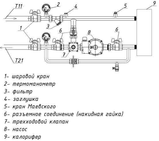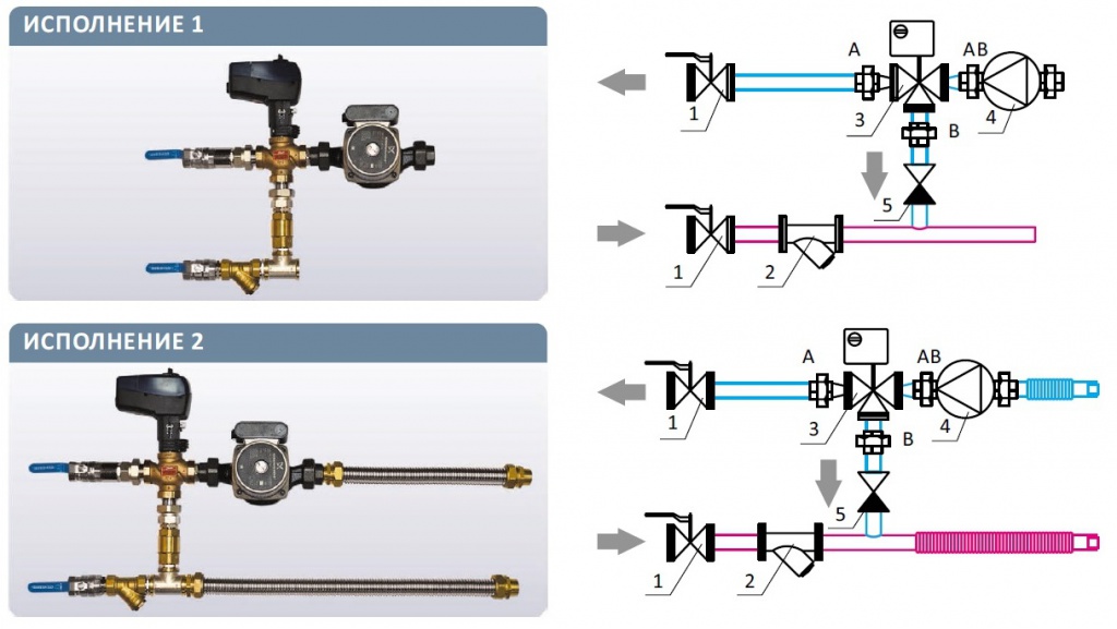 Pour réguler la puissance thermique des appareils de chauffage à air, les unités de mélange avec vanne à trois voies. Grâce au principe du mélange, vous pouvez réduire considérablement le coût de chauffage de la pièce.