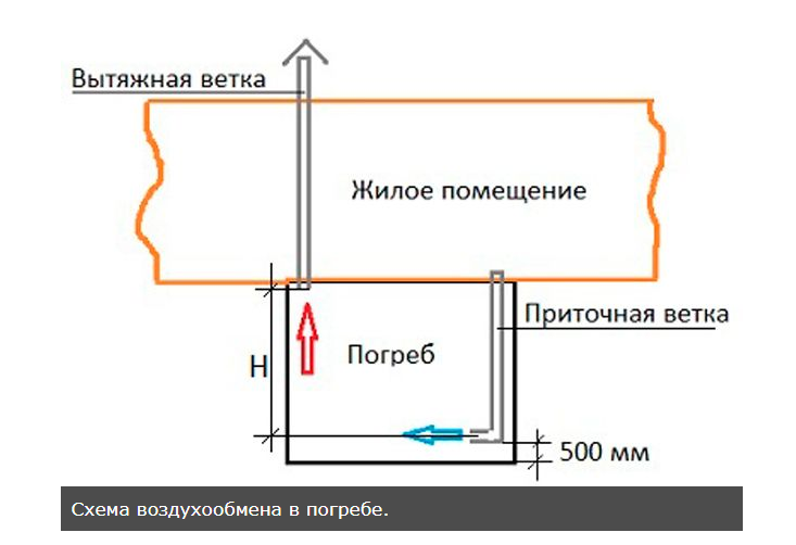 Je joins le système d'échange d'air le plus simple dans la cave, sur lequel vous pouvez vous concentrer. Et une photo bonus de la sortie du conduit, réalisée dans mon sous-sol. Où il est plus pratique et pratique d'installer une ventilation que vous décidez vous-même, en fonction de la disposition.