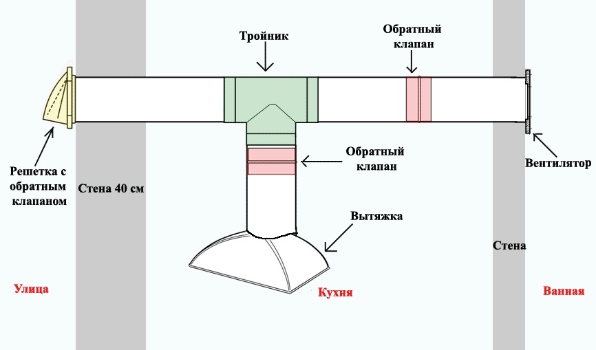 Donc, si les boîtes de la cuisine et de la salle de bain sont connectées à un seul système, l'inclusion hotte entraînera une pression atmosphérique non seulement vers la rue, mais aussi vers la salle de bain.