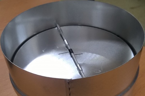 Le clapet anti-retour à papillon est équipé de deux volets, qui se replient à la pression requise avec une surpression et sont fermés au moyen de ressorts en son absence. Étant donné que le processus de fermeture ne dépend pas de l'action de la gravité, un tel dispositif, contrairement au type gravitationnel, peut être situé à n'importe quel angle.