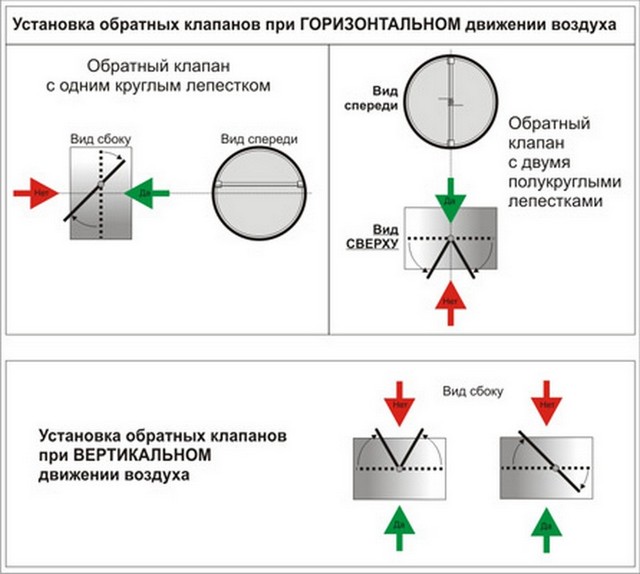S'il est nécessaire d'alterner le travail de ventilation naturelle et forcée, il existe deux solutions typiques pour l'installation d'un clapet anti-retour, ce qui rend cela possible: